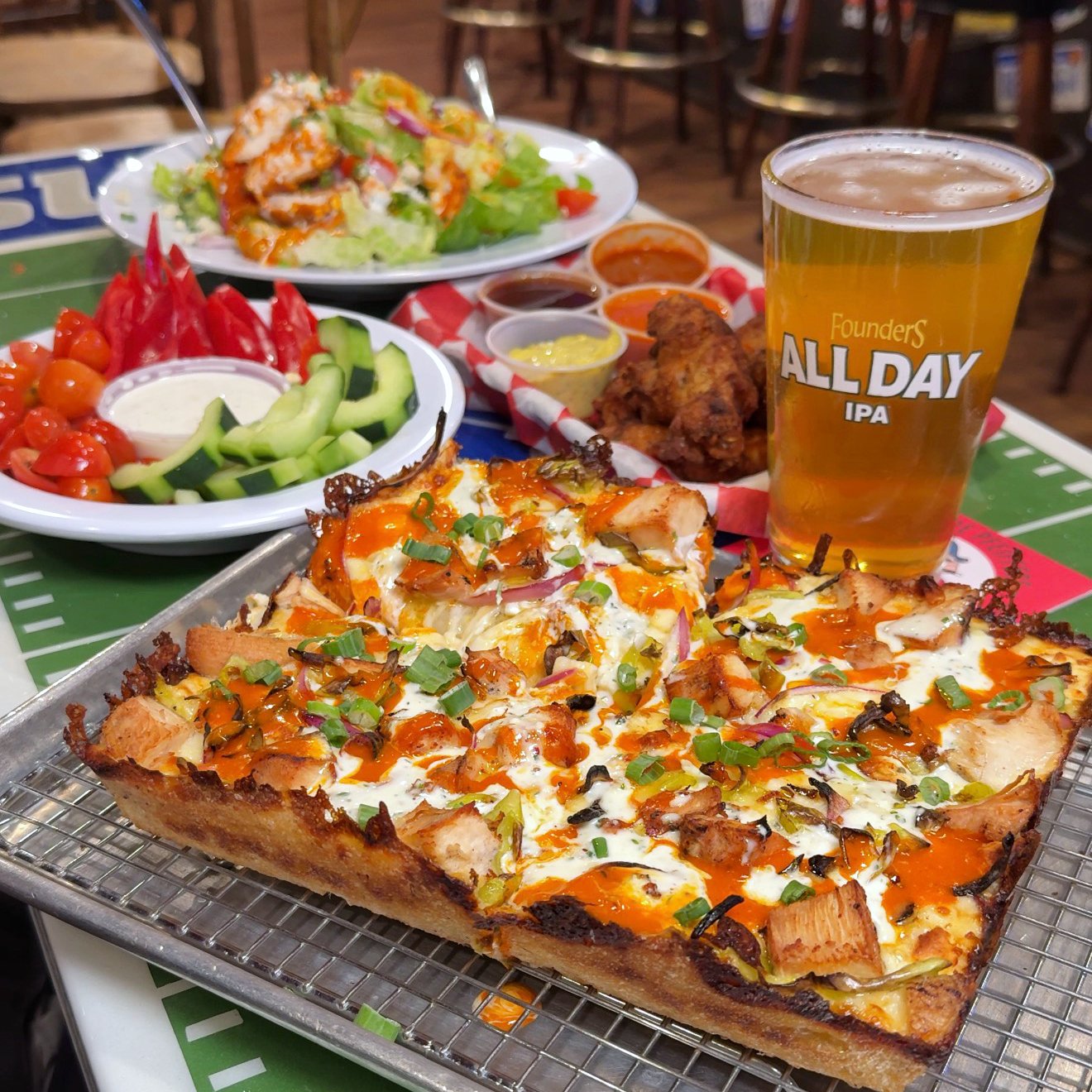 From the D Pizza ($23): A nod to our Detroit roots with double pepperoni, marinara, and parmesan. Add house-made hot honey drizzle for +$2. Gluten-free crust available for +$6.